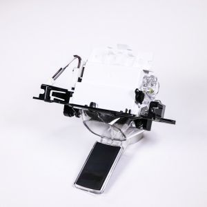 The assembly includes the WPW10616141 dispenser lever and bracket, which securely holds the control panel and facilitates the dispensing of ice or water upon activation.